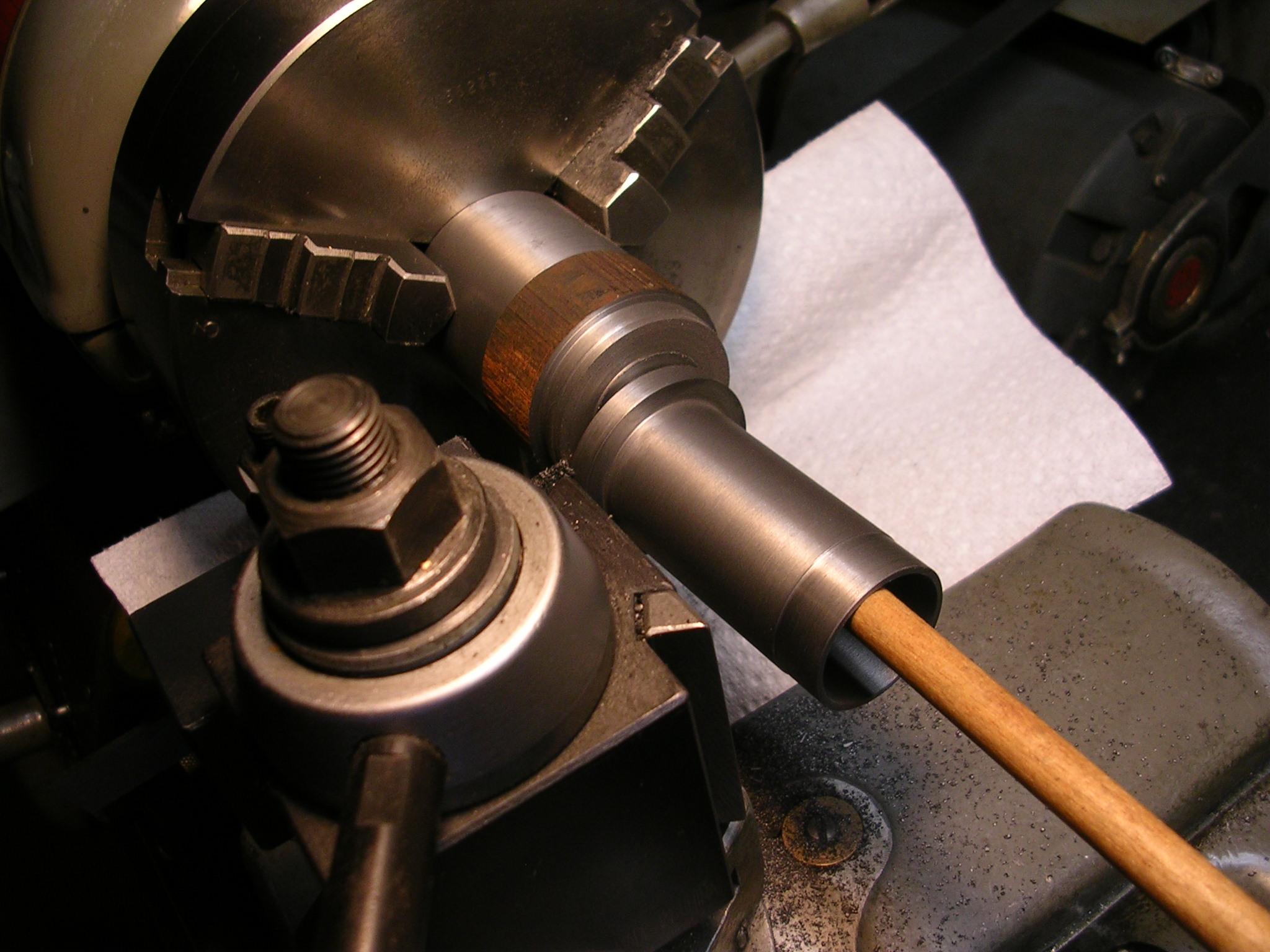Machining taper or outside of tube while attached to base casting.