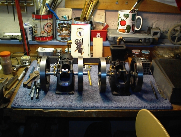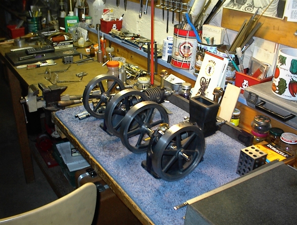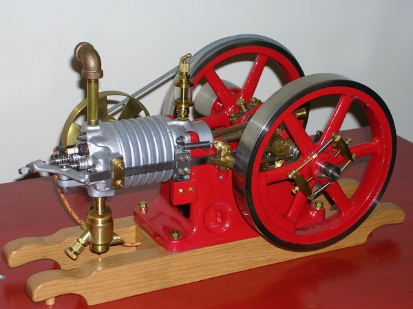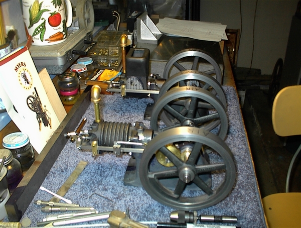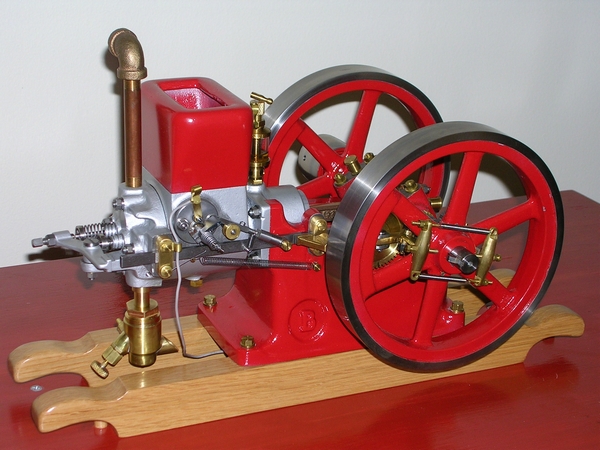 building thecorrect carburetors I found that they were very sensitive to fuel height. Designed and built a smaller version of the Lunkenheimer type carburetor as used on my Olds engine. These carburetors work MUCH better. This engine is igniter fired. |